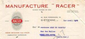 Racer est une marque stéphanoise fondée en 1894 située au 122 Rue d’Annonay à St Etienne qui a ensuite rejoint les ateliers du Forez, puis le girons de Angenieux, CLB et enfin de Sachs.