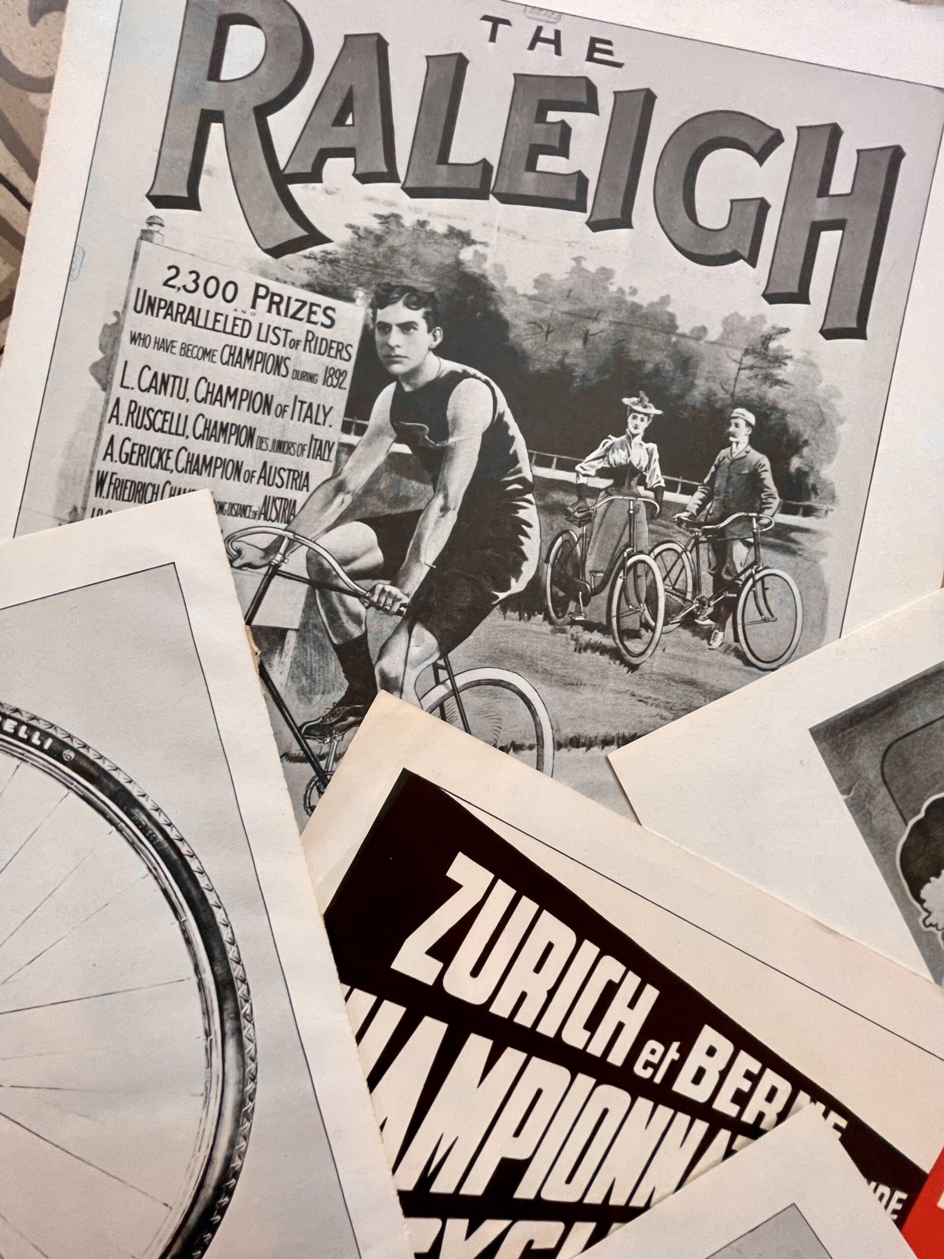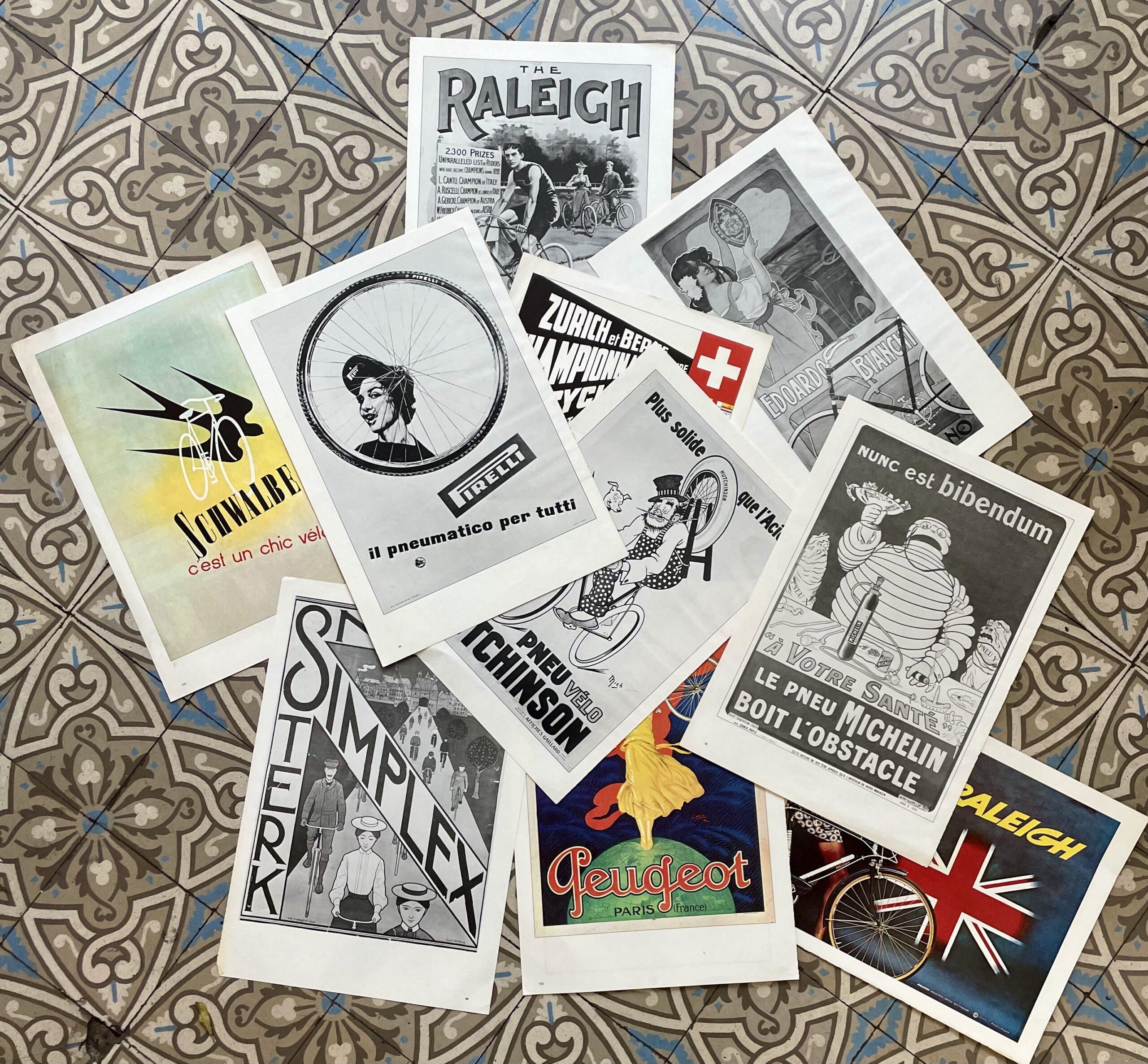Affiche publicitaire Peugeot, Raleigh, Bianci, Michelin, Pirelli…