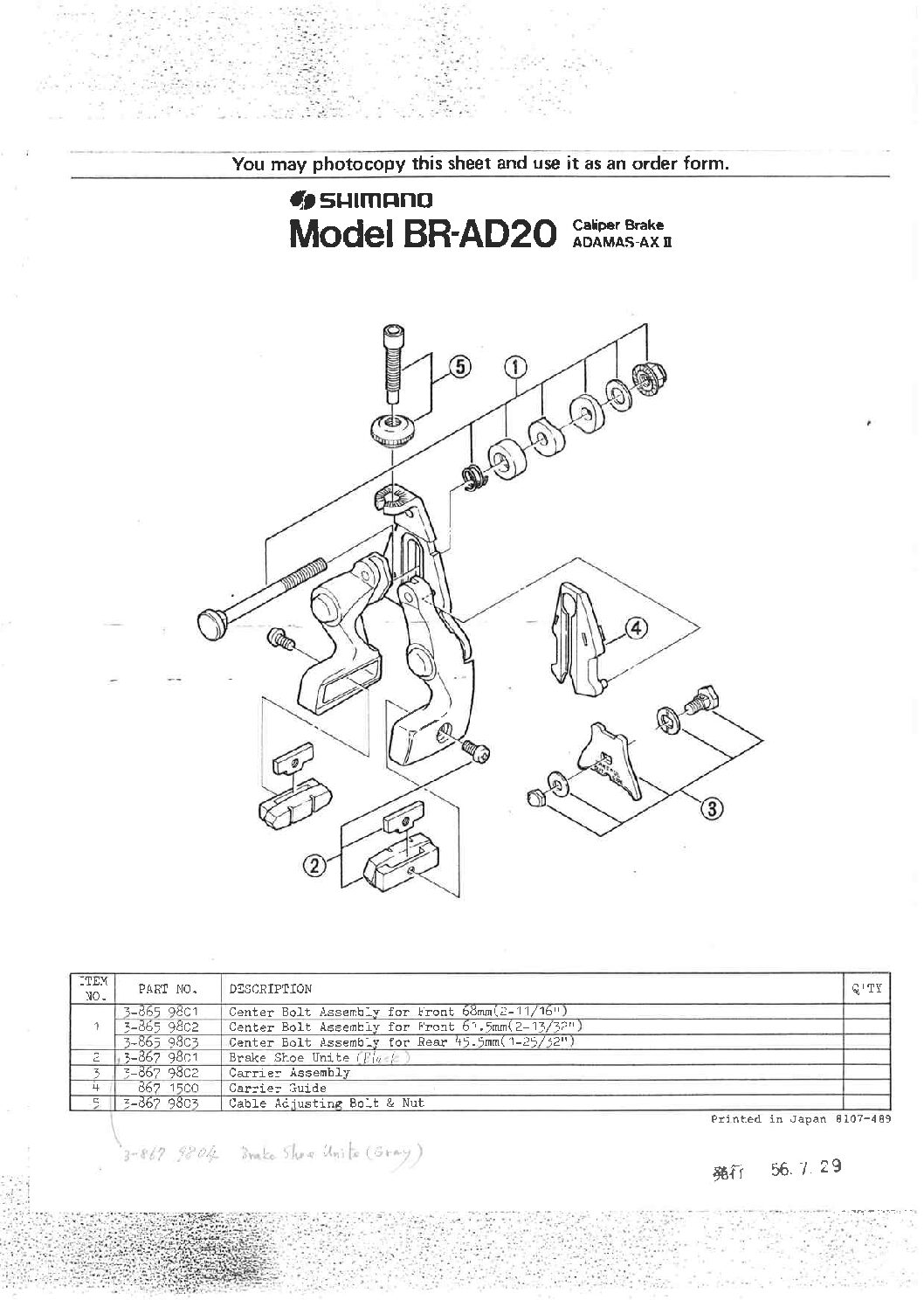 Leviers et étriers de freins Adamas , complets neufs avec notice de montage date de production 1981 , forme aérodynamique