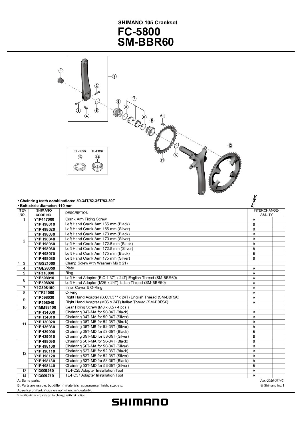 référence shimano du grand plateau : Y1PH98110 / 4524667890041
